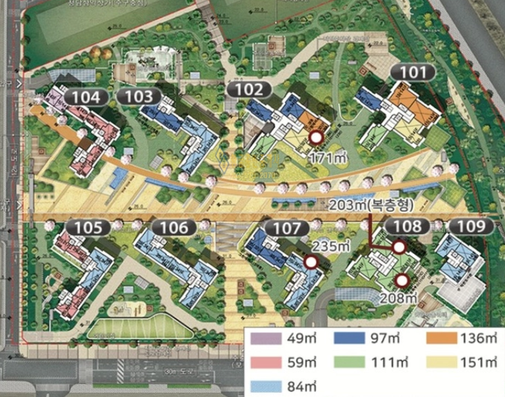 | 일반분양 주택형 (전용면적) | 총 11개의 평형 |