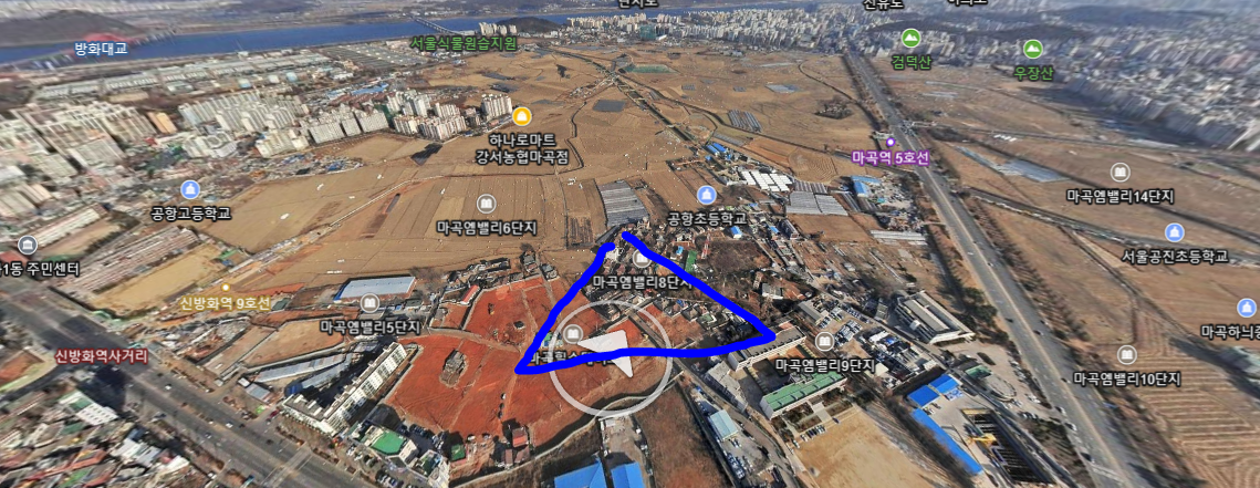 뒤로는 김포국제공항 앞으로는 서울을 잇는 한강까지 위치해 있는 상태라고 보면 되겠습니다.