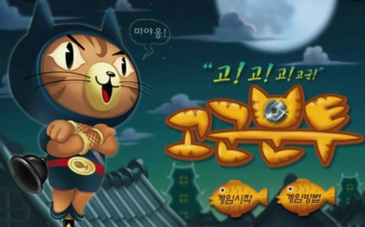 고군분투 게임은 주인공인 고양이가 지붕에 떨어지지 않게 뚜러뻥을 던져 줄을타고 담벼락을 넘는 게임 입니다.