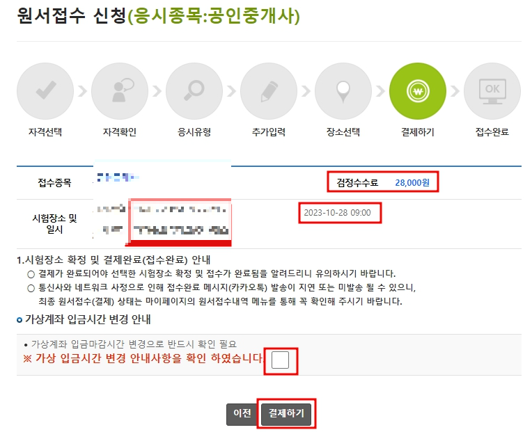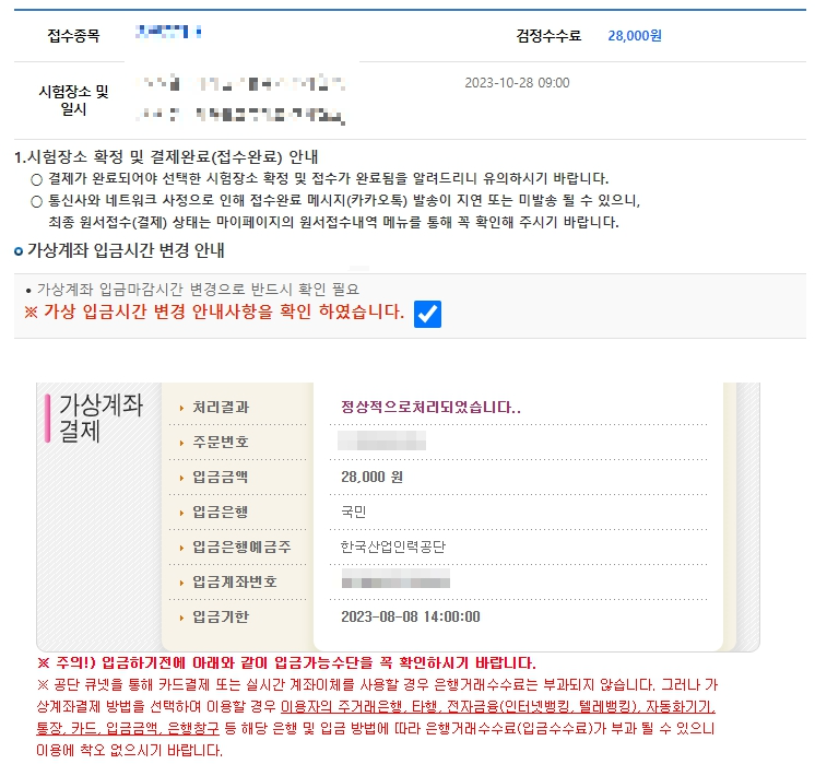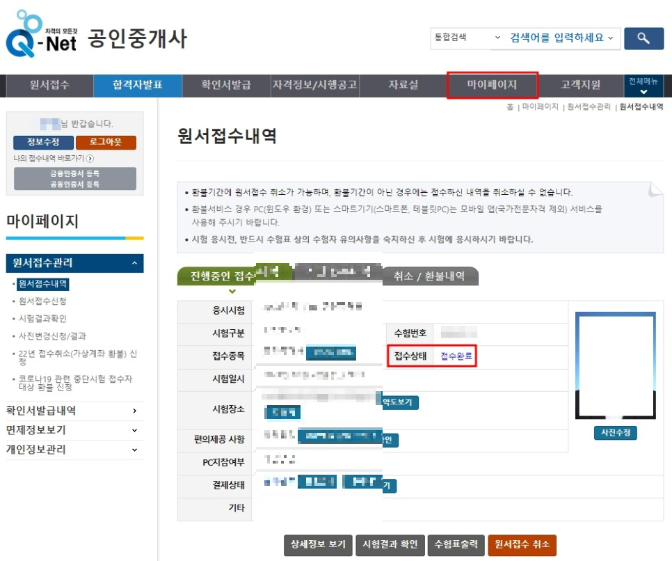 결제까지 완료가 되었다면 밑에 사진과 같이 접수완료 상태로 나오게 됩니다.
