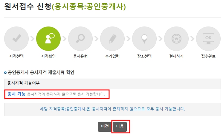 응시자격 가능여부가 나오게 됩니다. 보통 결격사유가 나오시는 분들도 간혹 있지만 보통의 응시자들은 없으니