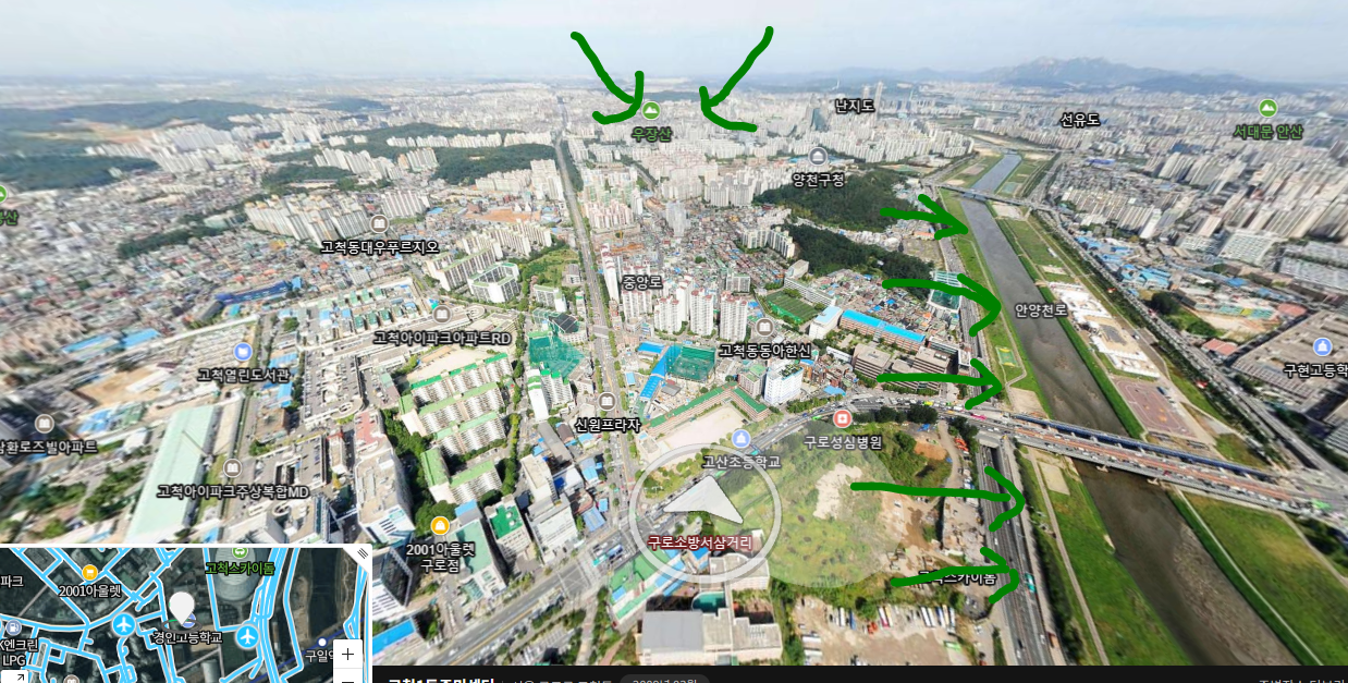 차량으로 이동가능합니다. 그리고 구로성심병원, 안양천 , 온수도시공원 가까운 자연환경도 있다는 점이