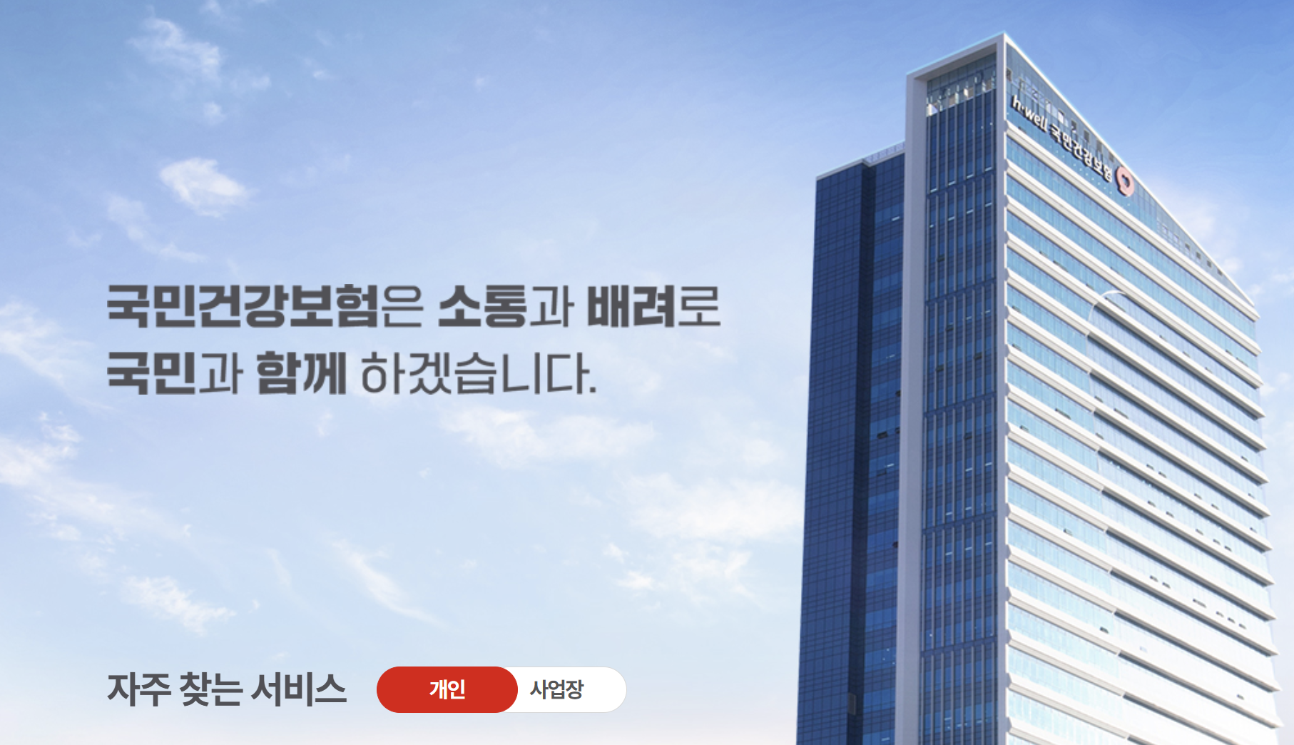 국민건강보험공단 공식 홈페이지에 접속합니다.