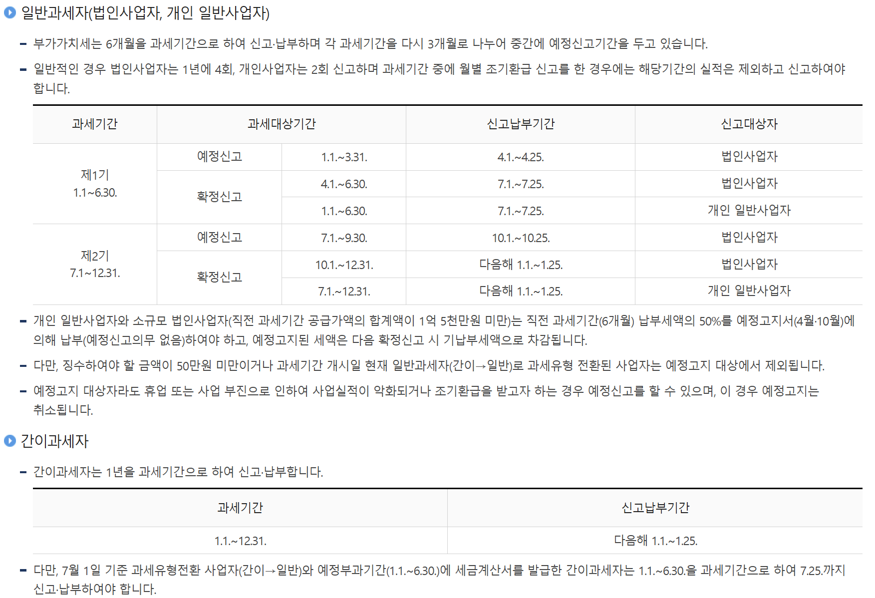 개인사업자와 간이사업자의 부가세 신고 방법과 기간은 다소 다릅니다.