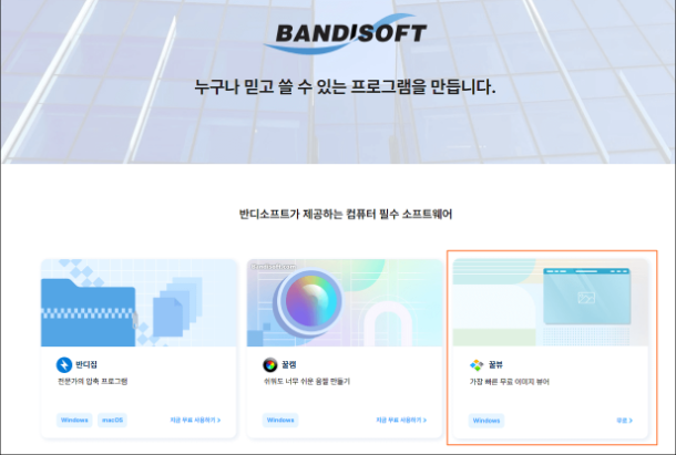 이 곳을 눌러 반디소프트 공식 사이트를 접속 해주세요.