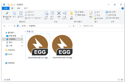 다운로드를 하면 밑에 사진처럼 아이콘이 두개가 나오면 압축을 풀어줍니다.