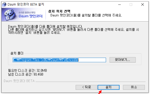다음팟 인코더가 모두 설치가 완료 되었습니다.