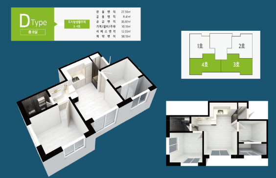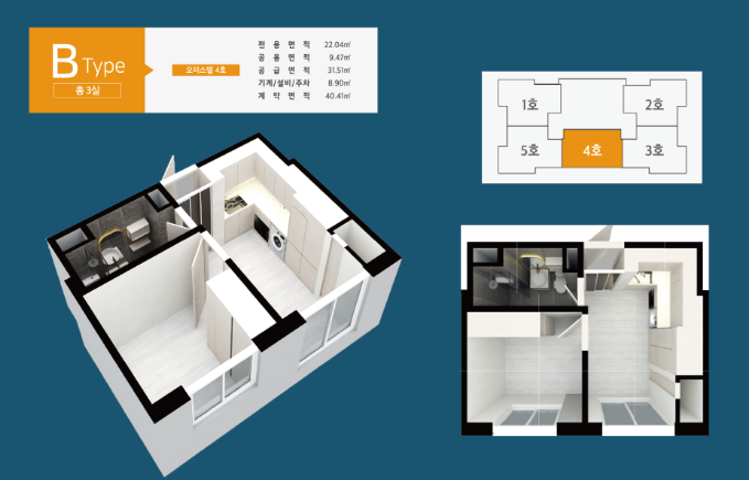 B형 : - 오피스텔 1.5룸 (총 3개)