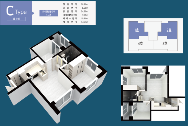 | 공용면적 | 10.24㎡ | 9.47㎡ | 8.00㎡ | 8.41㎡ |
