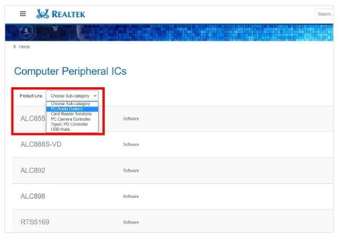 거기서 DOWNLOAD → Computer peripheral ics를 들어가세요, 그 다음 pc audio codecs를 누르세요.