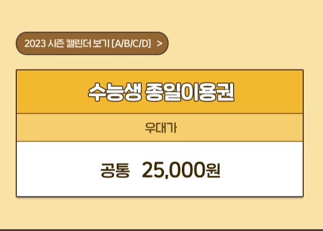 에버랜드 수험생 특별할인은 23년도에 수능이 끝난 24년도에 입학을 하는 수능생 또는 입시준비자 및 수시합격자를 대상으로 에버랜드 티켓 할인을 진행 합니다. 기간은 12월 31일 까지 진행예정이며 수능생이 받는 티켓은 종일 우대권으로 25,000원 을 지불하면 자유 이용권을 끊을 수 있습니다.