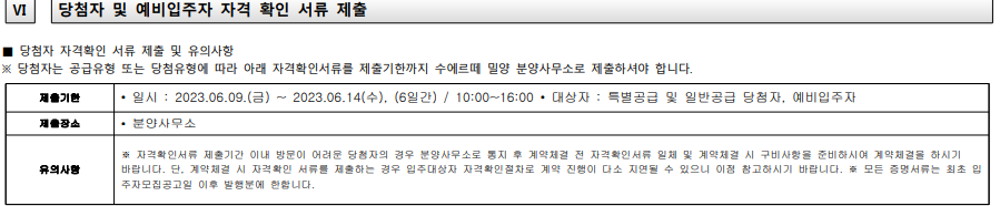 O | 자격 검증서류 | 당첨자 자격검증서류 일체(사전 제출기간에 제출 완료시 제외) | ||