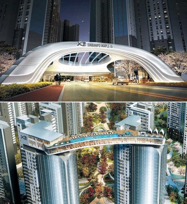 반포 메이플자이 건축은 매우 특이합니다. 사진에 보이다시피 한강을 구경할 수 있는