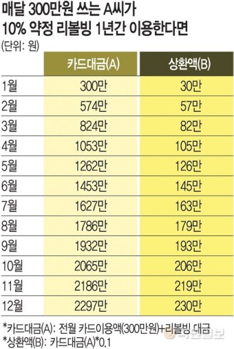 많은 사람들이 카드빚을 갚지 못해 리볼빙 서비스를 이용합니다