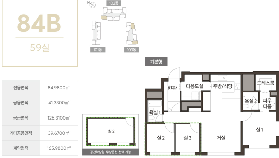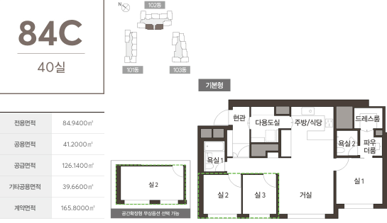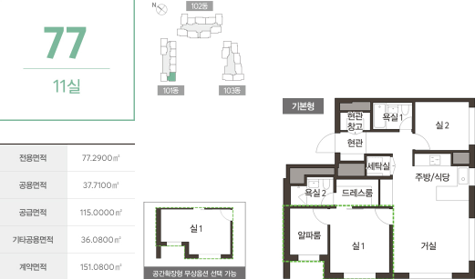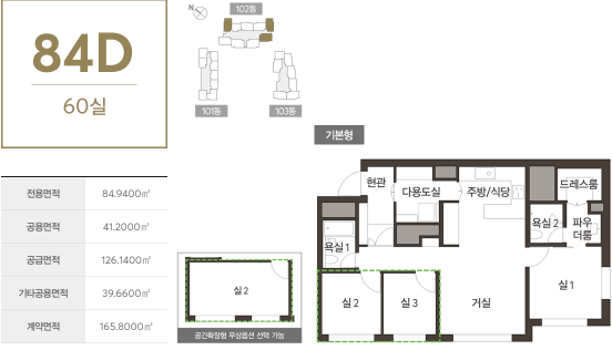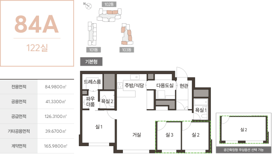 팬트리 , 알파룸 , 3면 발코니(일부) 등 특화설계 적용