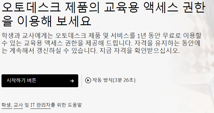 그런 학생들을 위해 오토캐드 2023년 학생용 무료 다운로드 버전도 있는데요, 다운로드는 위에 링크에서 하실 수 있습니다.