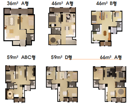 36m² A형 | 46m² A형 | 46m² B형 | 59m² A형 | 59m² BC형 | 66m² A형 | |