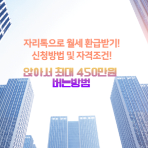 자리톡 어플을 사용하시면 월세를 최대 450만원 까지 환급받을 수 있습니다.