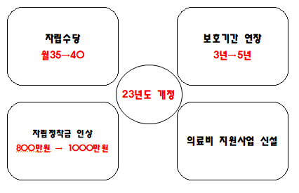 ✅ 자립 정착금은 기존 800만 원 이상에서1,000만 원 이상으로 인상되었습니다.
