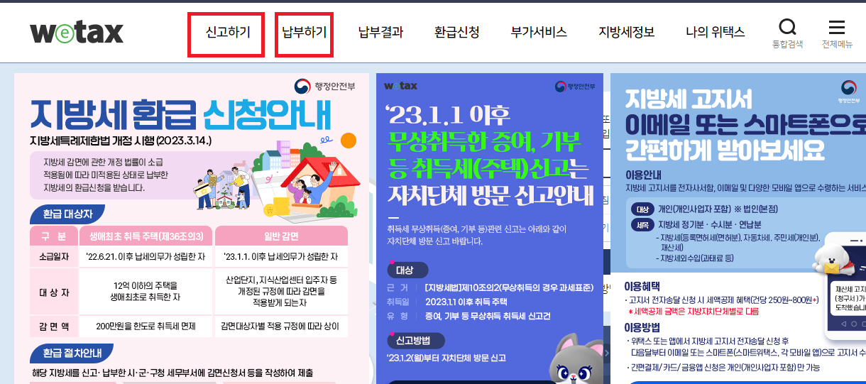 재산세는 납부는 위택스에서 하실 수 있습니다. 위택스를 들어가셔서 공인인증서 로그인을 하게되면 내가 납부해야할