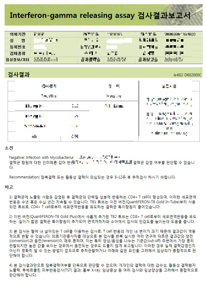 병원 근무자나, 보건 실습생 같은 경우는 주기적으로 잠복결핵검사를 받아야 하는데요.