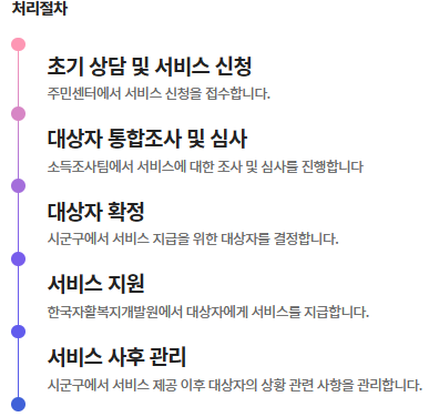 - 가입희망자는 복지로(www.bokjiro.go.kr)를 통해 온라인 신청 또는 읍면동 주민센터 방문 접수가 가능합니다.