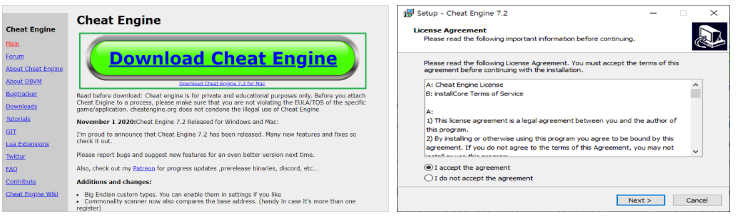 왼쪽 사진에 "Download Cheat Engine"을 누르면 다운로드가 시작 되며 계속해서 "next"를 눌러주면 되겠습니다.