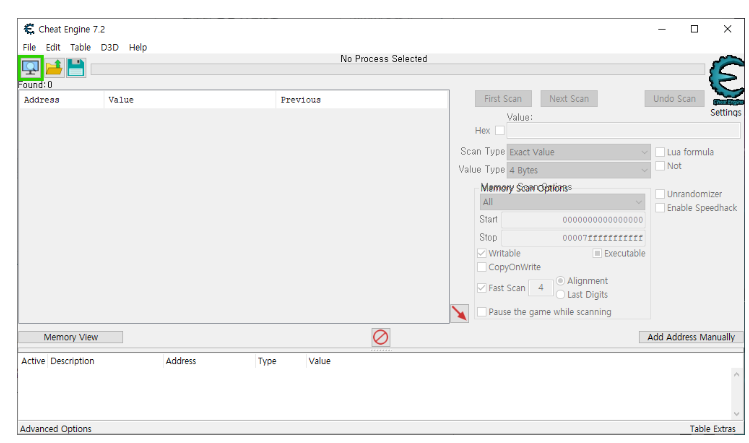 - 메모리 스캔 : 특정 값을 검색 하여 변수를 수정할 수가 있습니다.