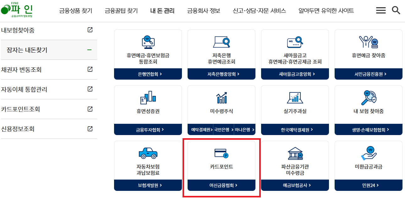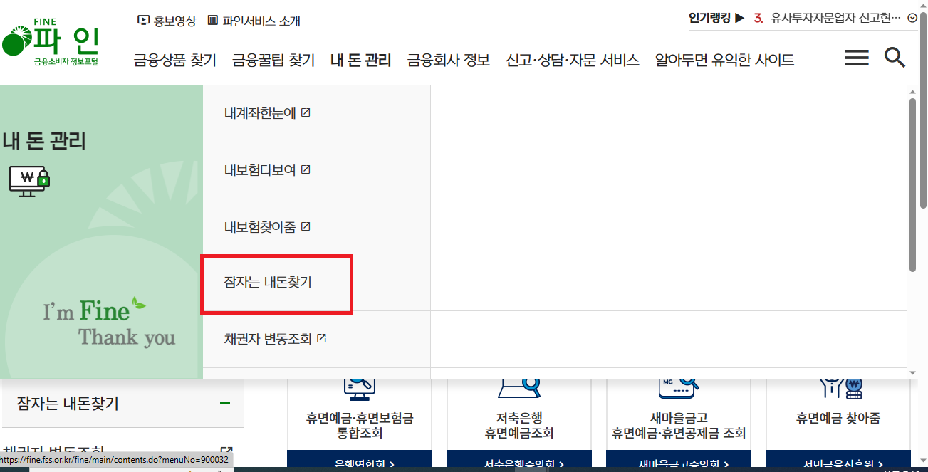 - 3단계 잠자는 내 돈 찾기를 클릭해 줍니다.