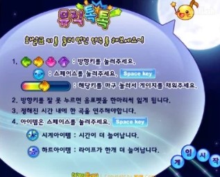 뮤직톡톡 게임시 방향키를 잘 못 누르면 음표펫을 한마리 씩 잃게 되며, 정해진 시간내에 한곡을 무조건 완성 해야 합니다!