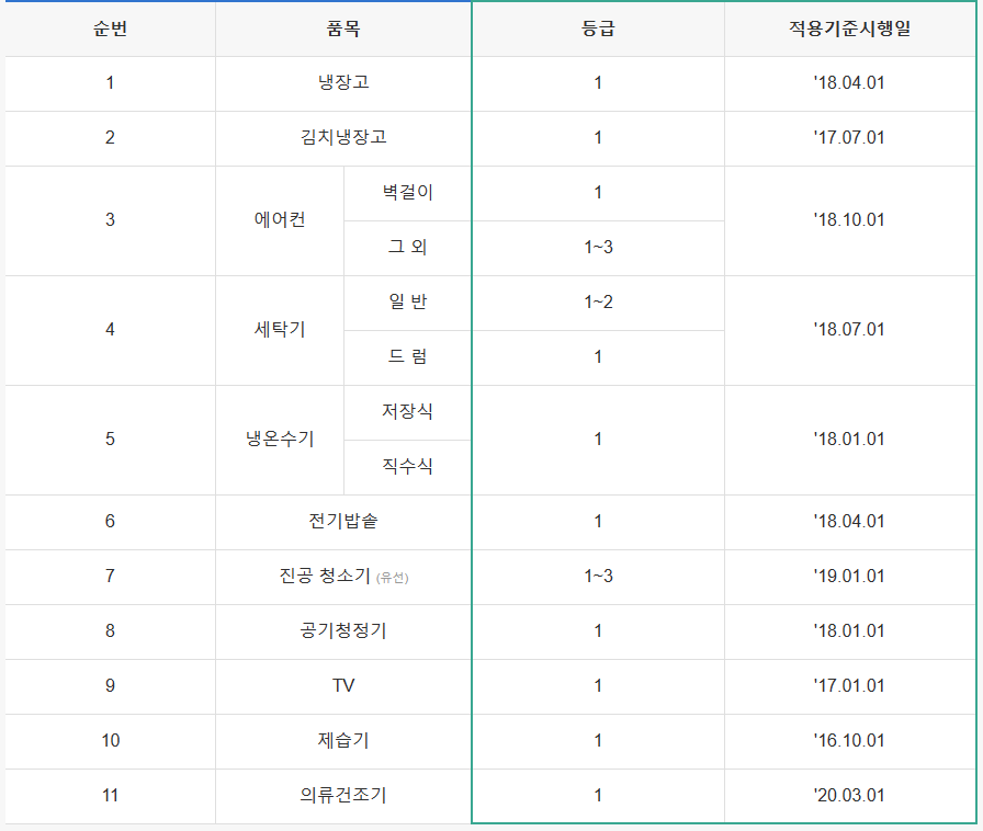 ✅ 적용기준 시행일 / 에너지소비효율등급 찾는 방법