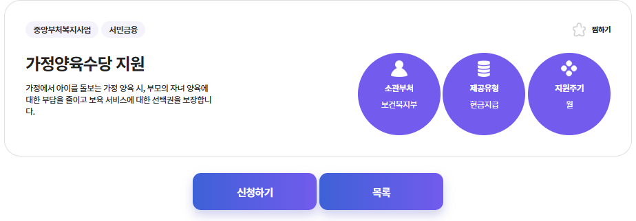 양육의 부담과 가정의 경제 부담을 덜어주기 위해 보건복지부에서 추진하는 사업으로 가정에서 아이를 돌보는 경우에 한해 영유아의 양육수당을 지원하는 제도입니다.