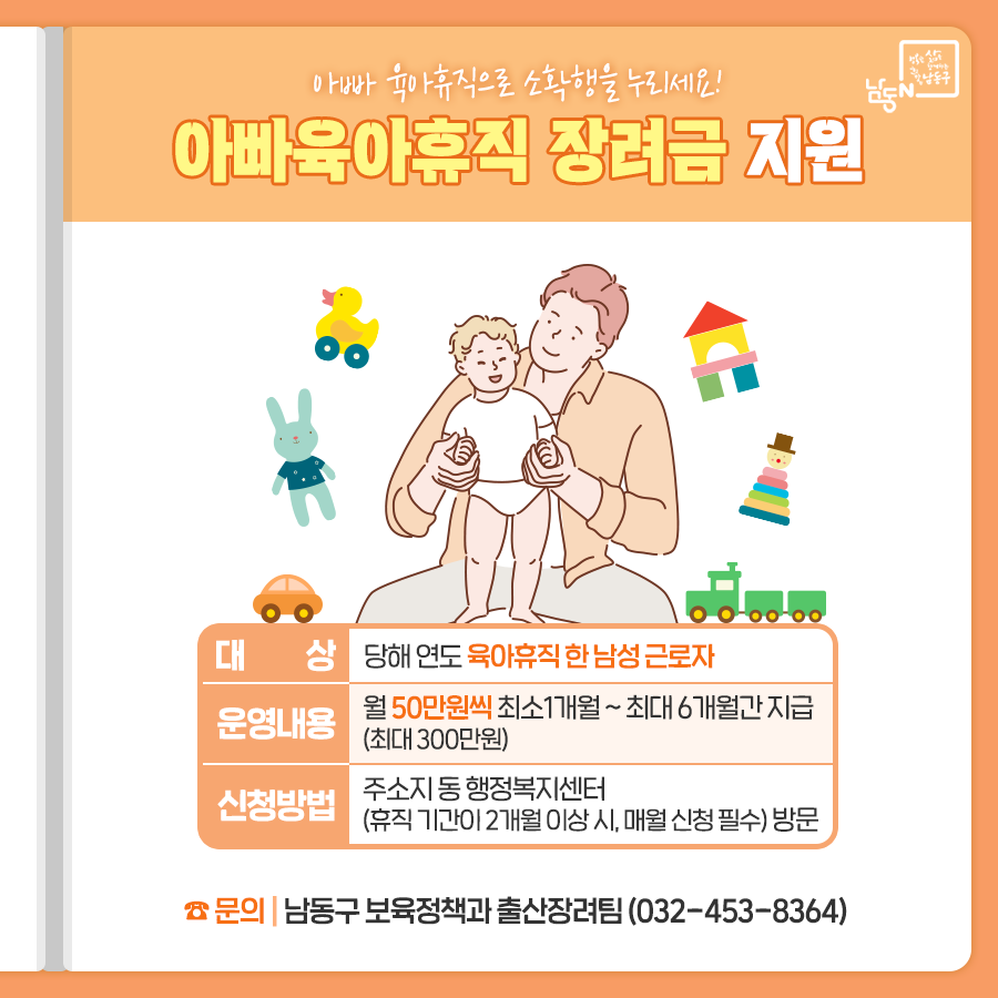 ✅각 동 행정복지센터 및 남동구 보육정책과 출산장려팀(☎453-8363)