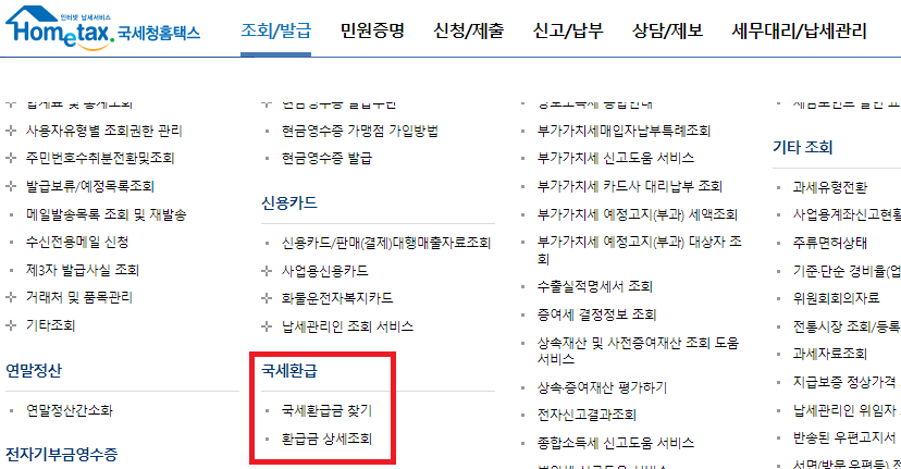 위 사진처럼 국세환급금 찾기, 환급금 상세조회 두 칸이 있습니다. 그냥 들어가서 로그인하시고